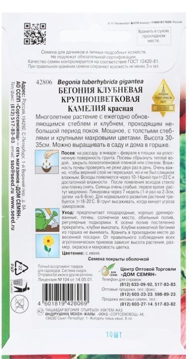 Уход: предпочитает плодородные, хорошо дренированные почвы, солнечное место, обильный полив, регулярные подкормки. К осени полив постепенно прекратить, клубни выкопать. Клубни комнатной бегонии из горшка не вынимать. Хранить в прохладном месте до весенней посадки.