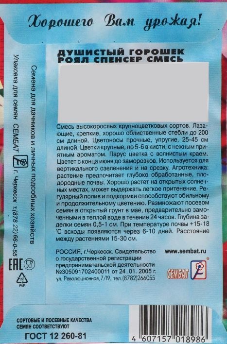 Однолетнее растение. Лазающие крепкие, хорошо облиственные стебли до 200 см длиной. Цветоносы прочные, упругие, 25-45 см длиной. Цветки крупные, по 5-6 в кисти, с нежным приятным ароматом. Парус цветка с волнистым краем. Цветет с конца июня до заморозков. Используется для вертикального озеленения и на срезку.