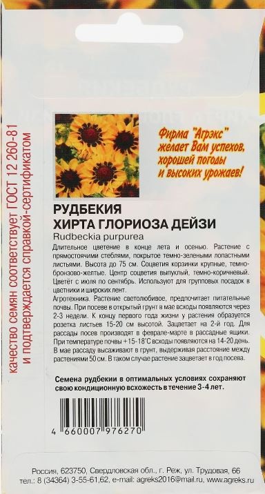 Длительное цветение в конце лета и осенью. Растение с прямостоячими стеблями, покрытое темно-зелеными лопастными листьями. Высота до 75 см. Соцветия корзинки крупные, темно-бронзово-желтые. Центр соцветия выпуклый, темно-коричневый.