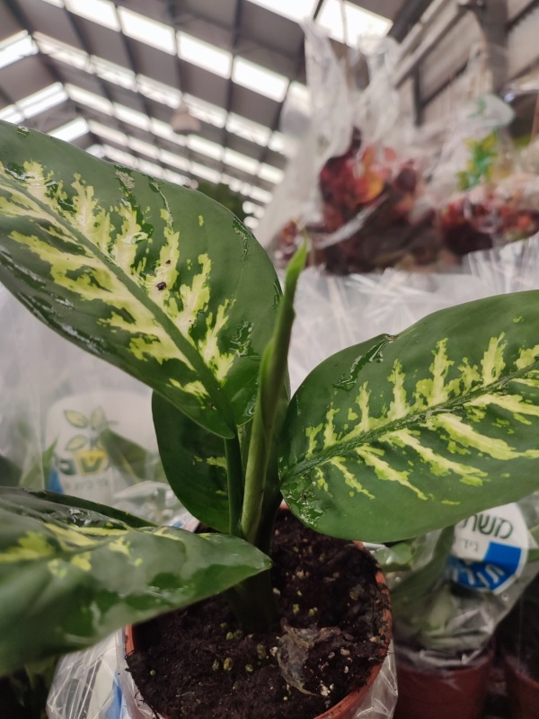 Листья большие, овальные, могут достигать в длину 30 см. Растение способно достигать в высоту 1 метра и более. При этом крупные листья отлично маскируют его ствол. Отличное комнатное растение для выращивания на солнечных окнах. Также диффенбахия Тропик Сноу неплохо растет в тени. В летний период листья комнатные растения следует периодически опрыскивать. Комнатное растение диффенбахия предпочитает ярко освещенные места без попадания прямых солнечных лучей. Если ее поставить в тень, она замедлит свое развитие. Если на солнце - могут быть ожоги. Но в любом случае, смену освещения нужно проводить постепенно, и тогда диффенбахия будет чувствовать себя хорошо как в тени, так и на притененном южном окне. Она, кстати, прекрасно растет при искусственном освещении.