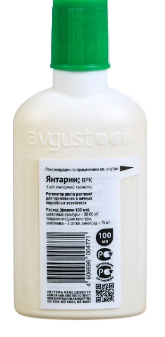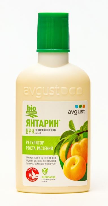 Янтарин - природный регулятор роста для ягодных, плодовых, овощных, цветочных и декоративных культур. Для применения в личных подсобных хозяйствах. Препаративаная форма: водорастворимый концентрат.