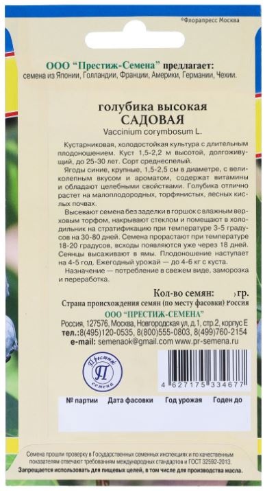 Семена Голубика высокая Блюкроп 0,01 гр.