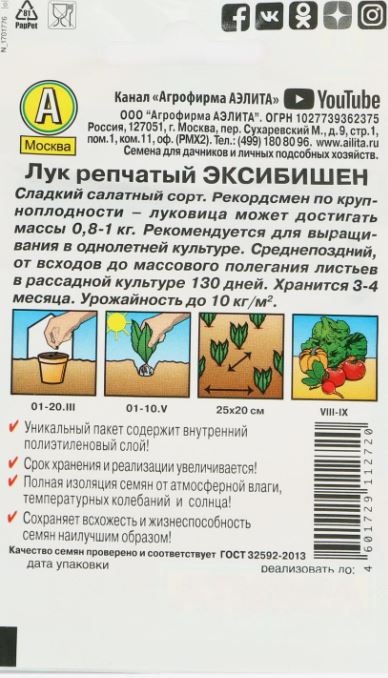 «Эксибишен» — это среднепоздний урожайный сорт репчатого лука, который подходит для выращивания в однолетней культуре. Период от всходов до массового полегания листьев составляет 130 дней.