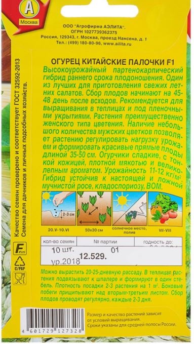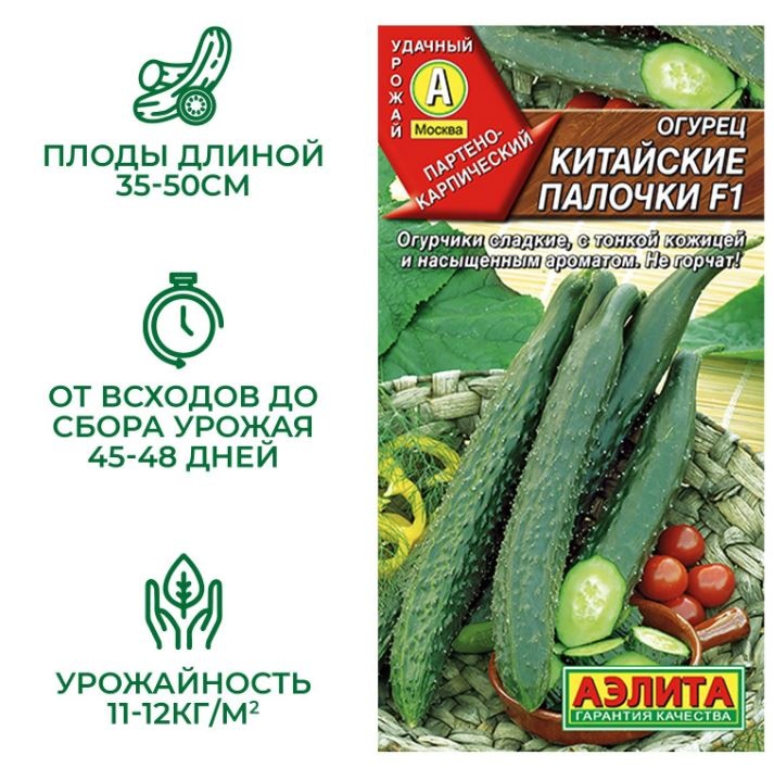 Высокоурожайный партенокарпический гибрид раннего срока плодоношения. Один из лучших для приготовления свежих летних салатов. Сбор плодов начинают на 45- 48 день после всходов. Рекомендуется для выращивания в теплицах и под пленочными укрытиями. Растения преимущественно женского типа цветения. Наличие небольшого количества мужских цветков позволяет растению регулировать нагрузку урожаем и формировать красивые прямые плоды длиной 35-50 см. Огурчики сладкие, с тонкой кожицей, плотной мякотью и великолепным ароматом. Урожайность 11-12 кг/ м 2. Гибрид устойчив к настоящей и ложной мучнистой росе, кладоспориозу, ВОМ.