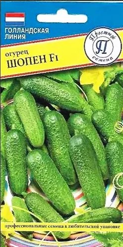 Семена Огурец Шопен F1. Огурец Шопен F1 ценится за дружное продуктивное плодоношение, плоды активно образуются даже в условиях затененности. Зеленцы и корнишоны соответствуют общепринятым стандартам вкуса и внешнего вида. Огурец Шопен F1 возделывают в тепличных сооружениях и на открытых участках. Созревание происходит рано – через 38-40 суток приступают к сбору первых корнишонов.Корнишоны хорошо транспортируются и сохраняются в прохладных условиях. Плоды длиной 10-11 см.,масса 95-105 г.,диаметр 2,7-3 см.,форма выровненная веретеновидная; мякоть хрустящая, сочная; консистенция упругая, крепенькая; вкус с нотками сладости без горчинки; пупырышки крупные; опушение умеренное.Сорт Шопен F1 славится обильными урожаями – с 1 м2 собирают 17,8-20 кг. плодов. Плоды относятся к корнишонному типу. Используются они универсально – в свежих салатах и закусках, для консервирования и засаливания.