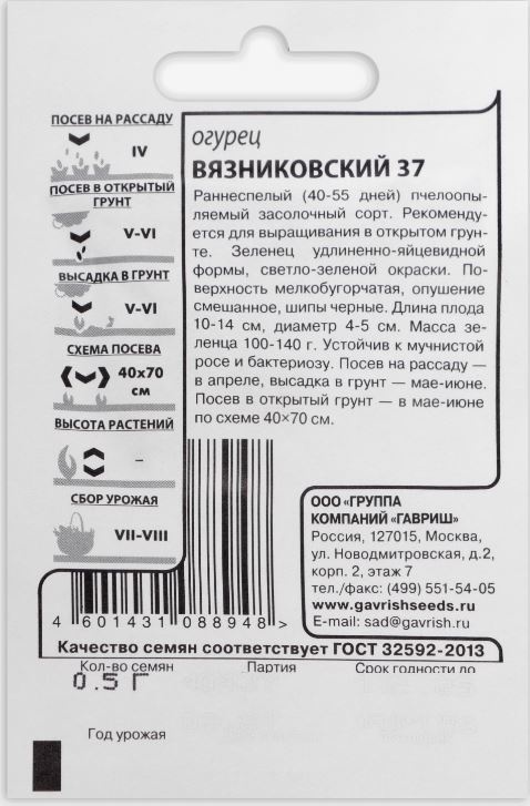 Один из старейших сортов нашей страны (выведен в 19-м веке!), внесенный в реестр института генетических ресурсов еще в 1924 году – огурец Вязниковский. Купить семена этой, почти раритетной разновидности, можно в израиле. Несмотря на то, что плоды короткоплодные, всего 9 – 11 см в длину, они имеют плотную мякоть с выраженным ароматом, весят в среднем 130 грамм. Сизоватый оттенок, черношипность, обилие мелких бугорков и локальная желтизна придает им превосходные засолочные качества. Для опыления требуются пчелы, поэтому лучше выращивать в открытом грунте, но можно и под пленочным укрытием с доступом для насекомых. Сорт устойчив к температурным колебаниям, требует постоянной влажности почвы, богатой гумусом. Созревание раннее – не более 55 суток. Урожайность до 3.5 кг/м2, что является высоким показателем для короткоплодной группы. До середины прошлого века данная разновидность была одной из самых популярных в Московской и Владимирской областях.
