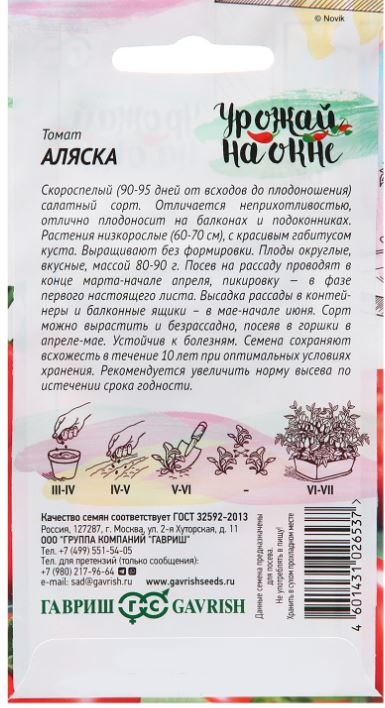 Ранний салатный сорт, с дружной отдачей урожая, начинает созревать уже в третьей декаде июня. Отличается неприхотливостью, отлично плодоносит на балконах и подоконниках. Сорт скороспелый (массовый сбор плодов производят через 90-95 дней после появления всходов). Растения низкорослые (60-70 см), с красивым габитусом куста. Выращивают без формировки. Плоды округлые, вкусные, массой 80-90 г.   Сорт можно вырастить и безрассадно, посеяв на теплые грядки  . Урожайность 2,0 кг/раст. Устойчив к болезням.