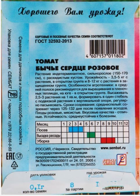 Сорт позднеспелый, высокоурожайный, очень популярный, для открытого грунта и пленочных теплиц. Высота куста 150 -200 см, на первых кистях плоды могут достигать 400 г, а на последующих размер снижается до 100 г. Окрас от розового до светло малинового цвета, плоды сердцевидной формы, крупные, удивительно вкусные и сочные. Сорт идеально подходит для домашней кулинарии.