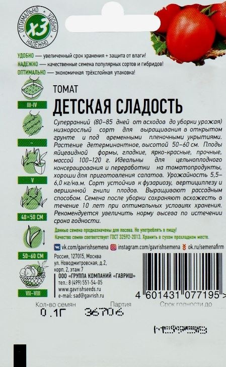 Суперранний (80-85 дней от всходов до уборки урожая) низкорослый сорт для выращивания в открытом грунте и под временными пленочными укрытиями. Растение детерминантное, высотой 50-60 см. Плоды яйцевидной формы, гладкие, ярко-красные, прочные, массой 100-120 г. Идеальны для цельноплодного консервирования и переработки на томатопродукты, хороши для приготовления салатов. Урожайность 5,5-6,0 кг/м2. Сорт устойчив к фузариозу, вертициллезу и вершинной гнили плодов. Выращивают рассадным способом. Купить семена томатов в Израиле можно на нашем сайте.