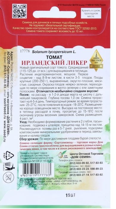Уход: необходимо формирование растения в 2 стебля, пасынкование, подвязка к шпалере, прищипка над 14-15-м листом. Рекомендуются поливы раз в 5-7 дней, рыхления, подкормки комплексными минеральными удобрениями в период завязывания и налива плодов.