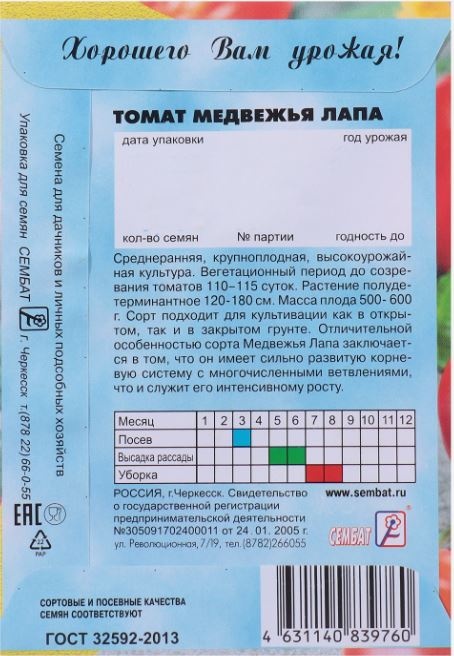 Выведенный садоводом-любителем сорт среднераннего томата любим профессионалами за редкое сочетание крупноплодности и высокой урожайности. В кистях мощного куста, который достигает высоты в 170 см, образуется по 4–5 плодов массой до 800 г.