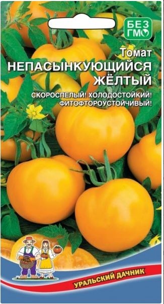 Высокоурожайный скороспелый сорт для открытого грунта. Растение штамбовое, детерминантное, компактное, высотой 40-50 см. Плоды округлые, гладкие, золотисто–жёлтые, массой 70-100 г, отличного вкуса.