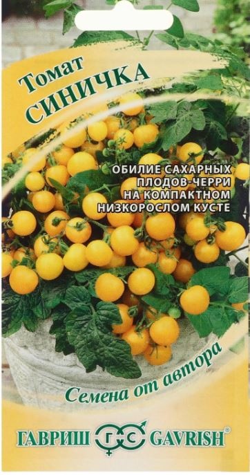 «Синичка» имеет жёлтый плод массой 15–20 г. Прекрасно подходит для употребления в свежем и маринованном виде. Обладает комплексной устойчивостью к болезням. При посадке в горшок растение имеет прекрасный декоративный вид и помимо сладких сочных плодов украсит ваш балкон или комнату.