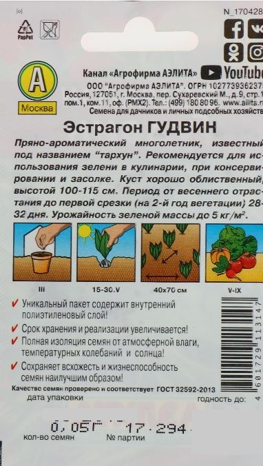 Благодаря внутреннему полиэтиленовому слою пакет не пропускает влагу и увеличивает срок годности семян до 2 лет.