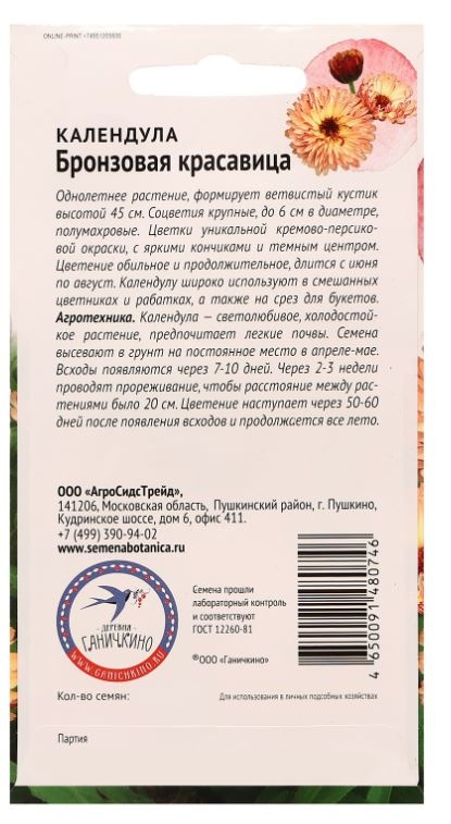 Семена цветов Календула "Бронзовая красавица", 10 шт