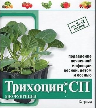 Трихоцин, СП - биологический почвенный фунгицид на основе полезного почвенного гриба Trichoderma harzianum, штамм Г-30 ВИЗР, направлен на подавление возбудителей заболеваний, распространяющихся и сохраняющихся в почве (возбудители корневых и прикорневых гнилей томата и огурца открытого грунта, рассады цветочных культур).