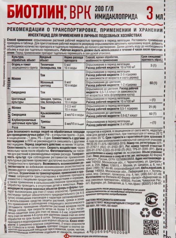 Действующее вещество: 0,1 г/л имидаклоприда.