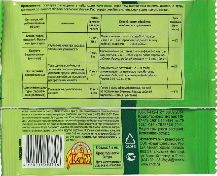 Опрыскивание растений, 1-е – в фазе 2–3 настоящих листьев, 2-е – через 7 дней после первой обработки. Расход рабочей жидкости — 500 мл на 15 м².