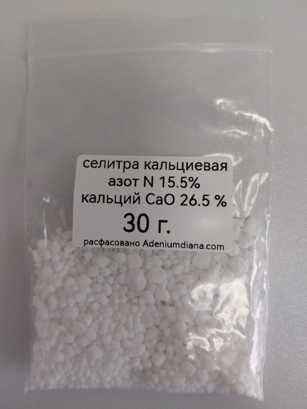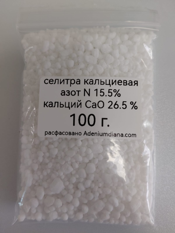 Кальциевая селитра или нитрат кальция (азотнокислый кальций) – неорганическая соль азотной кислоты, применяемая как щелочное азотное удобрение для всех культур. Содержит 26,5% кальция и 15,5% азота. Не содержит хлора.