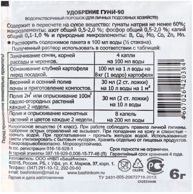 Действующее вещество Гуми и Гуми-М: биоактивированные по молекулярному весу соли БМВ-гуминовых кислот природного происхождения и важнейшие микроэлементы адаптогенной природы.