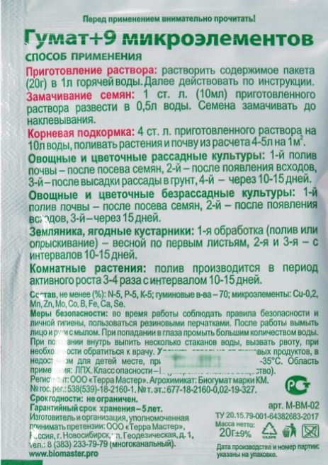 Комплексное ограноминеральное удобрение, содержащее весь необходимый набор микроэлементов для подкормки овощных, ягодных, цветочных культур и комнатных растений. Увеличивает плодообразование, повышает продуктивность, увеличивает сроки хранения, стимулирует жизнедеятельность микрофлоры в почве.